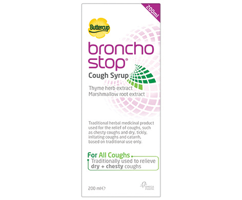 Traditional herbal medicinal product used for the relief of coughs, such as chesty coughs and dry, tickly, irritating coughs and catarrh, based on traditional use only.
